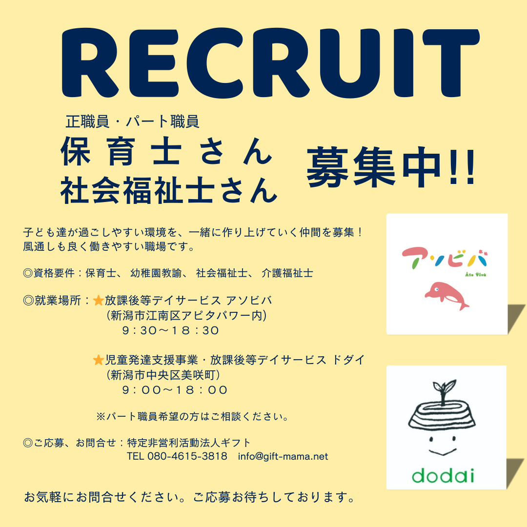『アソビバ』と『ドダイ』で職員増員の為募集いたします