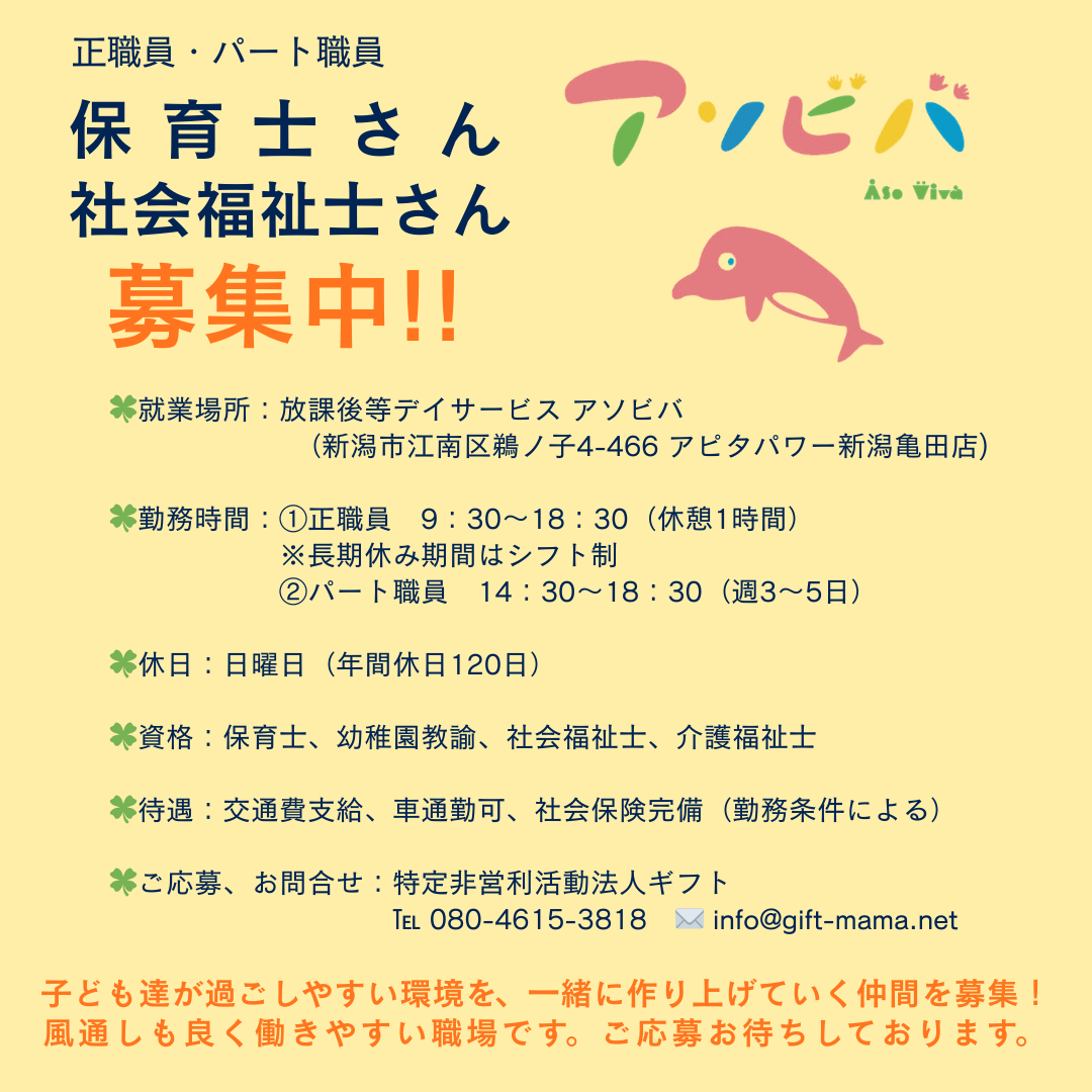 保育士、社会福祉士さん、募集中!