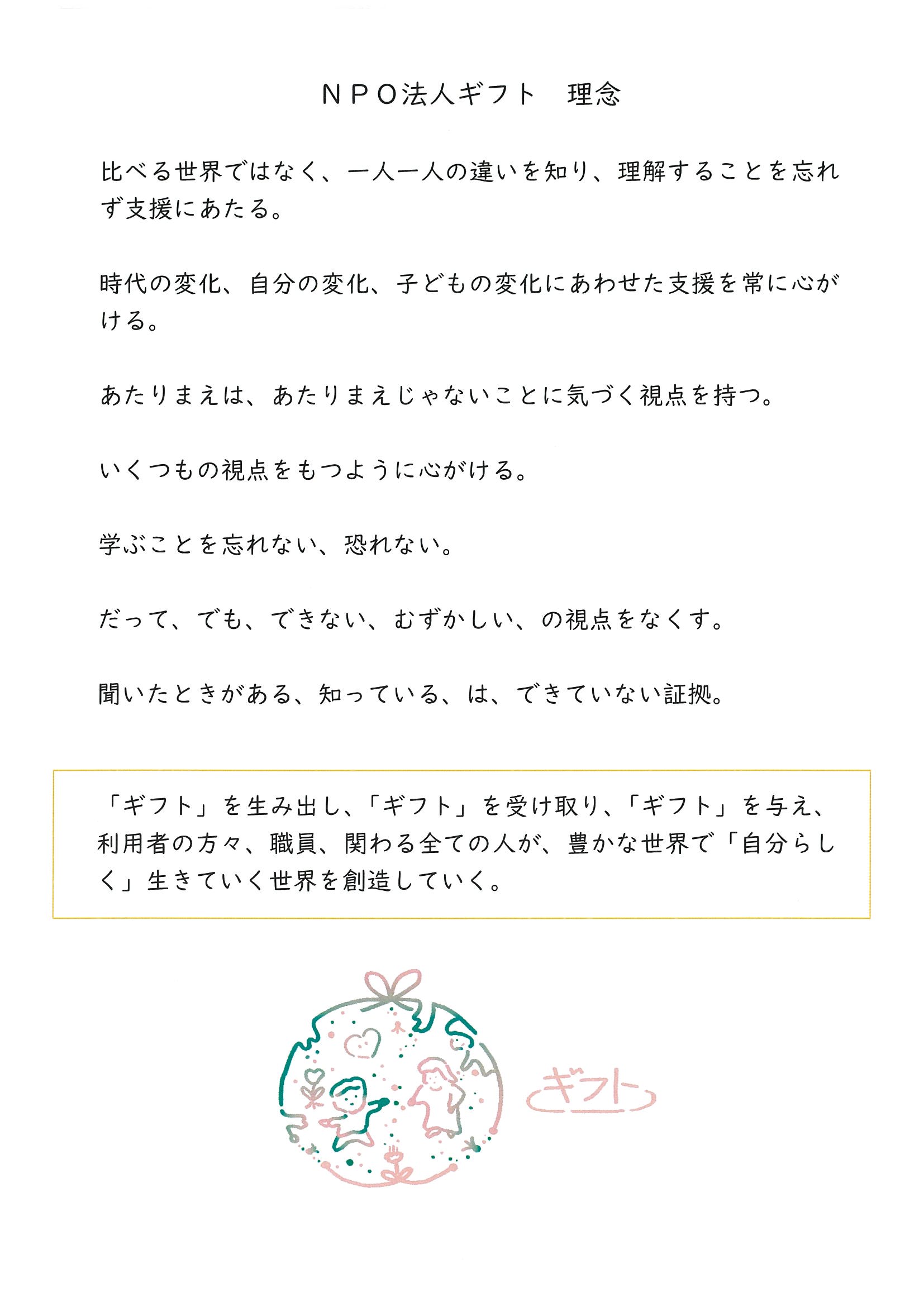 | 特定非営利活動法人ギフト 〒950-0087 新潟市中央区東大通2-4-10日本生命新潟ビル9階TEL:080-4615-4031 E-mail:info@gift-mama.net  |